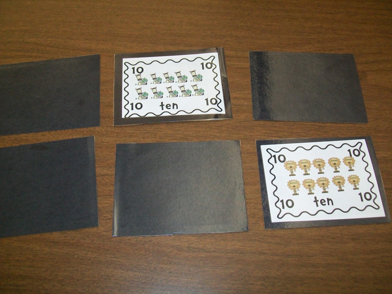 I created a set of playing cards, so far we are just getting used to the new suits. Instead of hearts, diamonds, spades and clubs, we have a kindergarten friendly set of monkeys, lions, zebras and giraffes. To start with we are just matching our number cards, both on our hangers, (great for developing that fine motor control), and also on the tables. A matching game is always fun! My little kinders will match ANYTHING!
